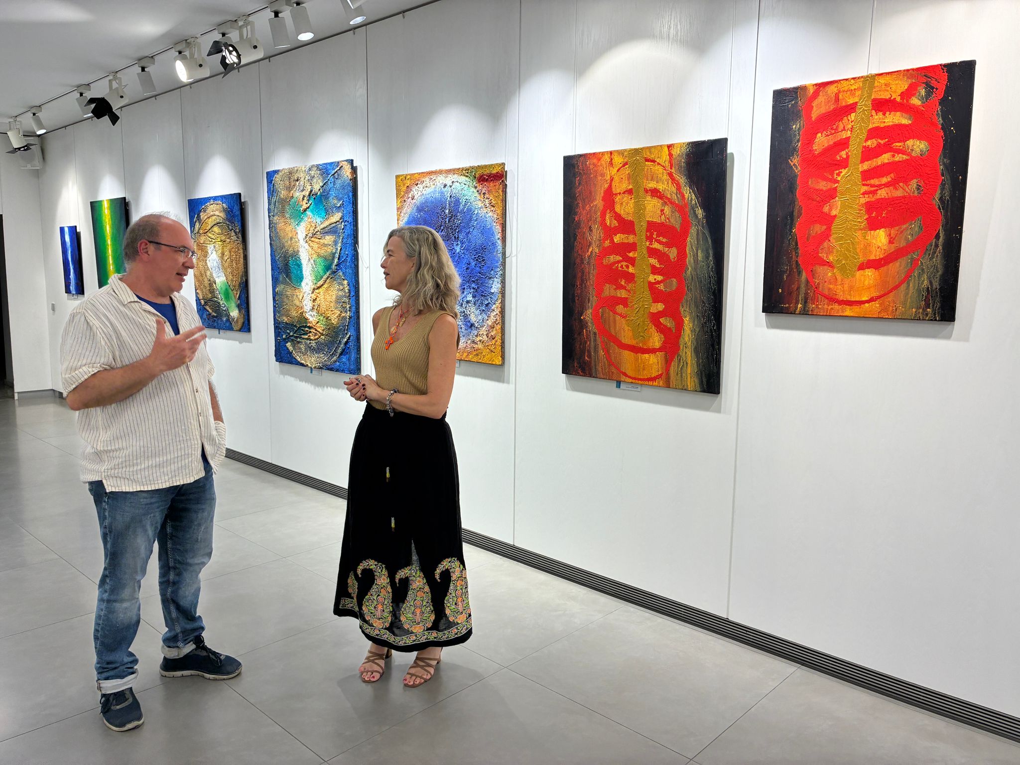 La muestra de Jorge Mejías Carrión reúne una selección de sus trabajos más recientes, en los que el autor despliega una abstracción rotunda y personal, marcada por la búsqueda de la pureza del color y la expresividad de la materia.