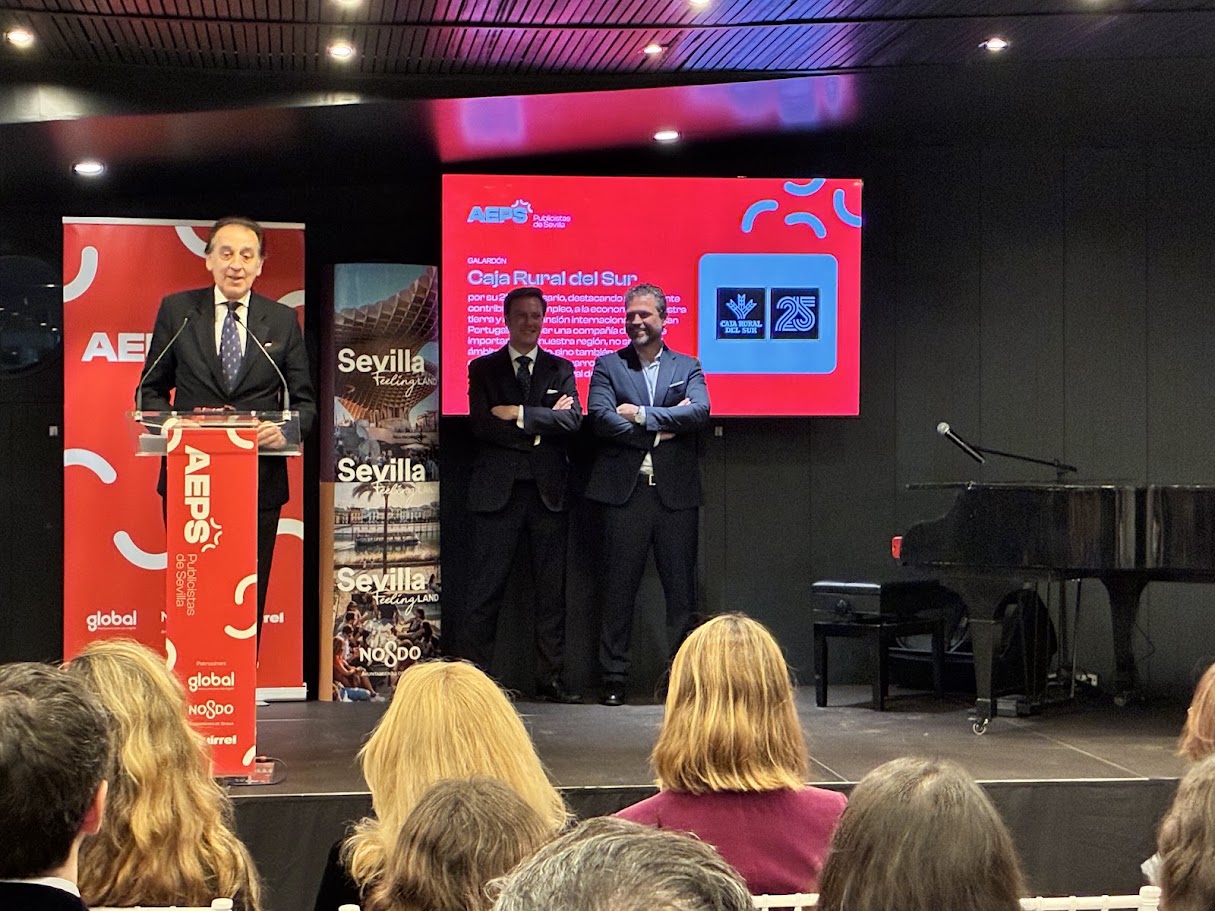 Caja Rural del Sur ha recibido el Premio Empresa 2026 de la Asociación de Empresas de Publicidad de Sevilla, AEPS, en el marco de la Gala Anual de la Asociación de Empresarios de la Publicidad de Sevilla (AEPS), celebrada este jueves 29 de enero con motivo del Día de la Publicidad. El reconocimiento, concedido coincidiendo con su 25 aniversario, pone en valor su trayectoria como entidad financiera cooperativa de referencia en Andalucía, su crecimiento sostenido y su firme compromiso con el territorio. El Premio fue recogido por Manuel Ruiz Rojas, director financiero y de relaciones institucionales de la Fundación Caja Rural del Sur.