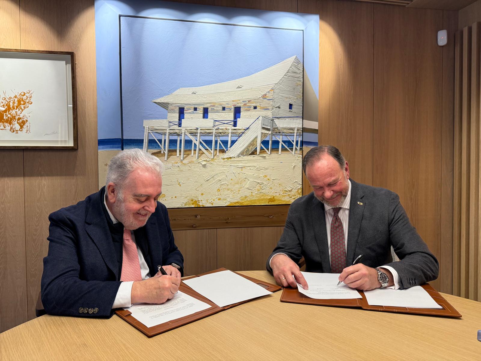 El presidente del Real Club de Enganches de Andalucía, Jesús Contreras Ramos, y el presidente de la Fundación Caja Rural del Sur, José Luis García-Palacios Álvarez, han sido los encargados de rubricar este nuevo convenio que da continuidad a una relación fructífera que se ha mantenido viva a lo largo de los años.