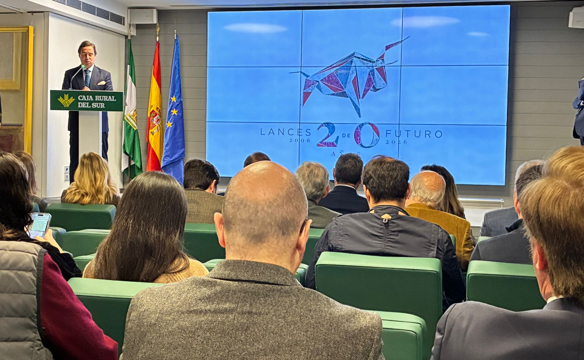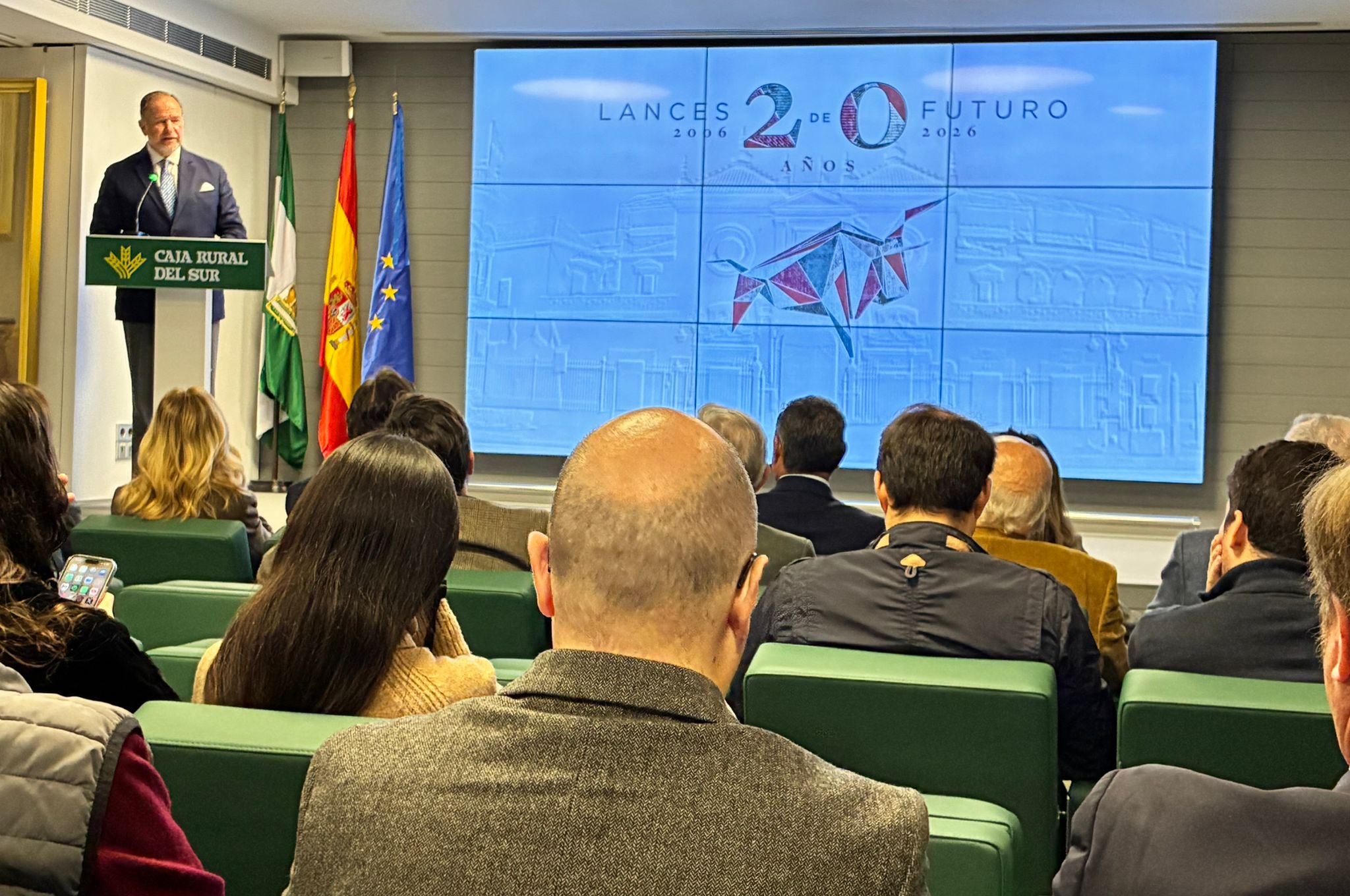 La sede de la Fundación Caja Rural del Sur ha acogido este lunes la presentación oficial de la nueva campaña publicitaria para la temporada 2026 en la Plaza de Toros de la Real Maestranza de Caballería de Sevilla, en un acto que contó con la asistencia y bienvenida del presidente de la entidad, José Luis García-Palacios.